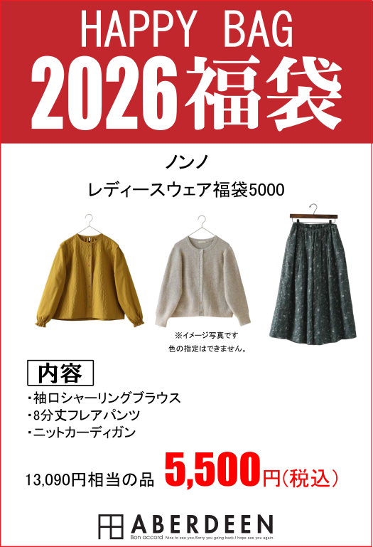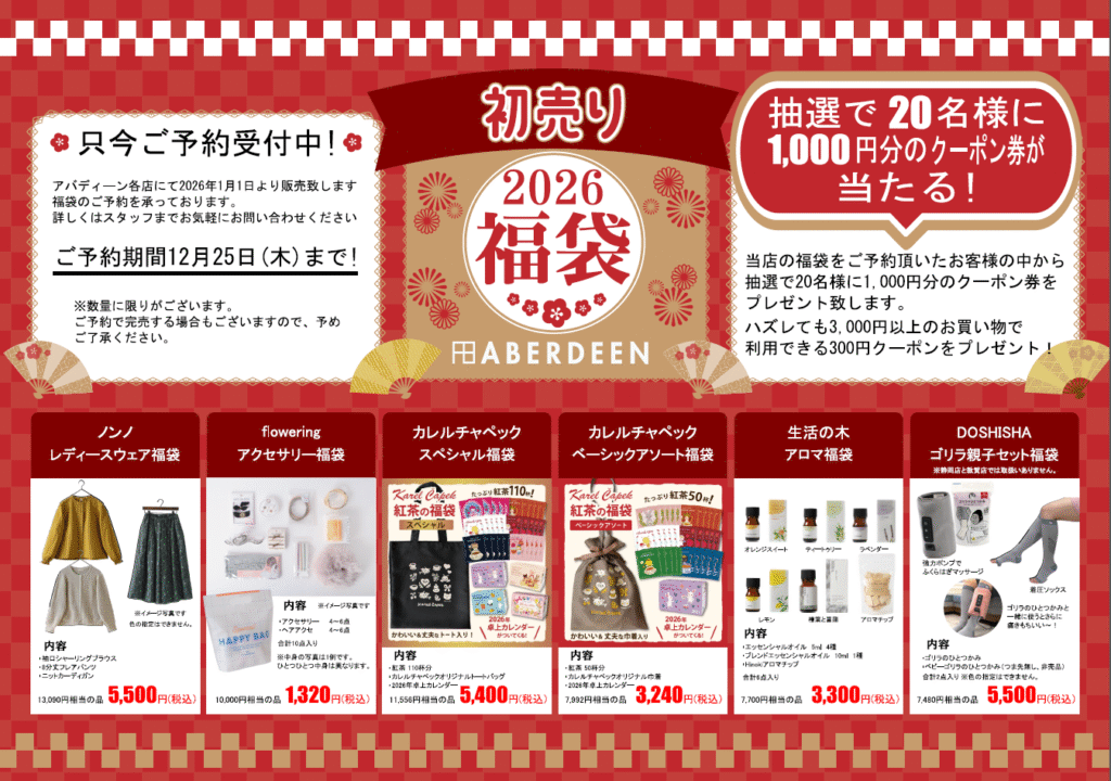 只今アバディーンでは店頭にて2026年福袋のご予約を受け付け中です。