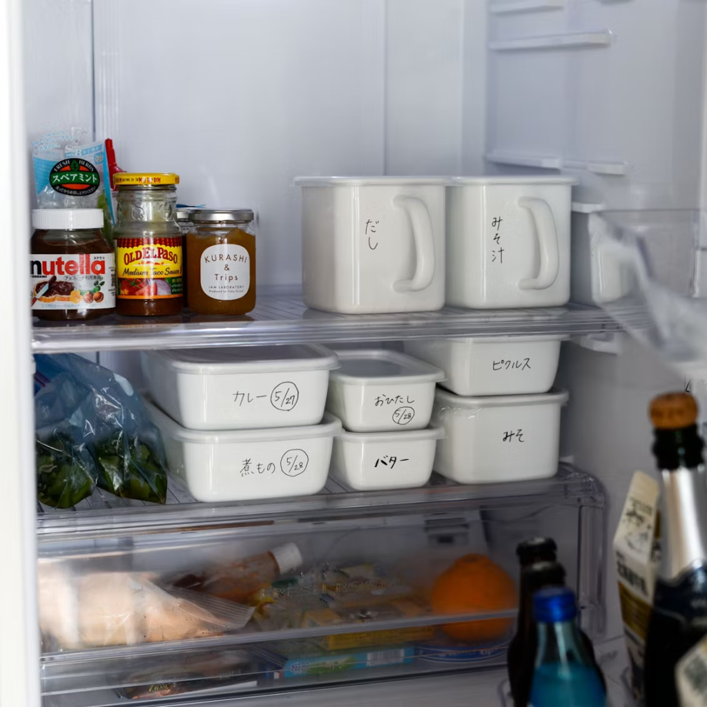 多めに作ったおかずや食材を冷蔵庫に保存する際は重ねて収納できるから省スペースで、冷蔵庫の空間を有効に活用できます。