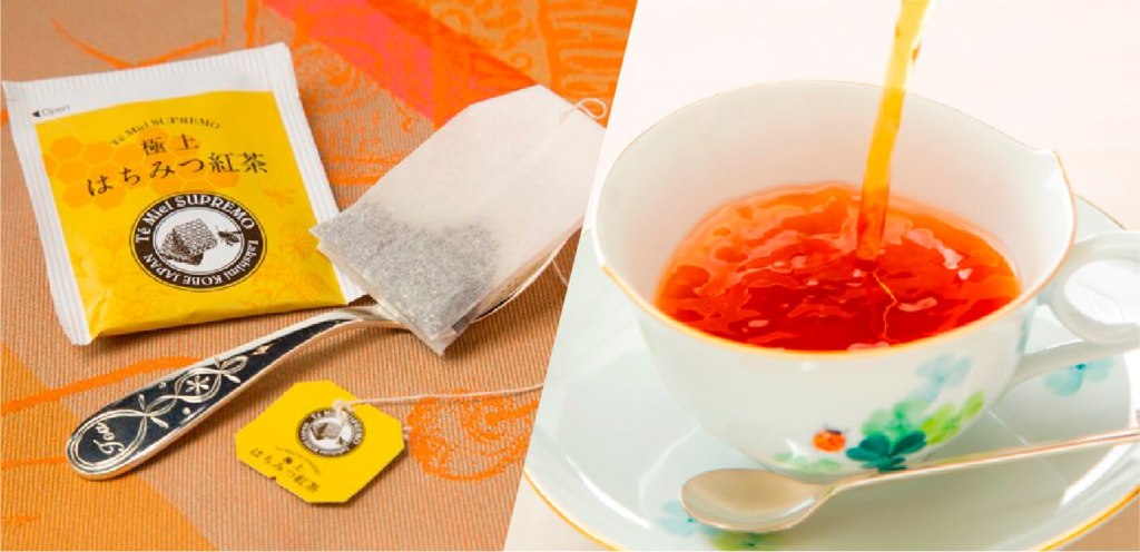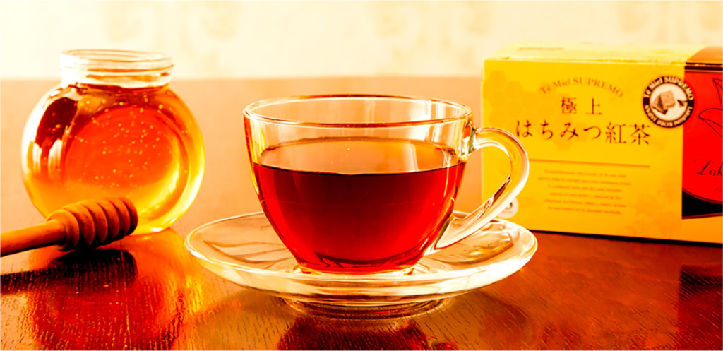 それは厳選した茶葉とはちみつ、こだわりぬいた製法で生み出した高級ブレンドティーの証です。はちみつパウダーが程よい甘さと香りを生み出し、茶葉本来の美味しさを感じることのできる極上の紅茶。